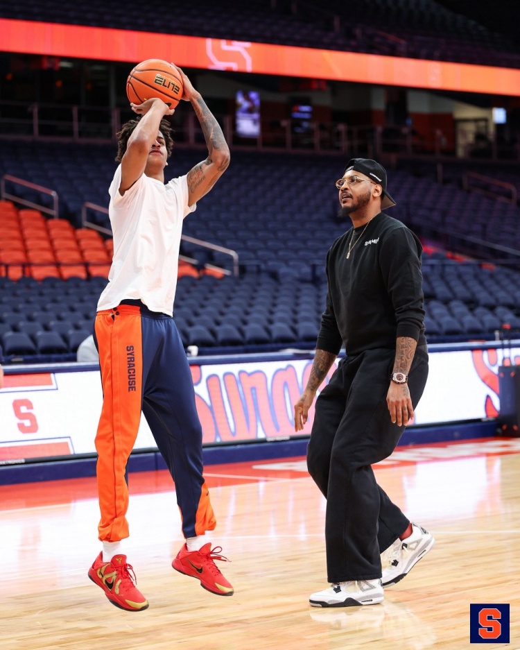 1月15日讯 安东尼儿子基扬表示,他的父亲几乎每场比赛当天都会飞到雪城,并陪他进行赛前训练。